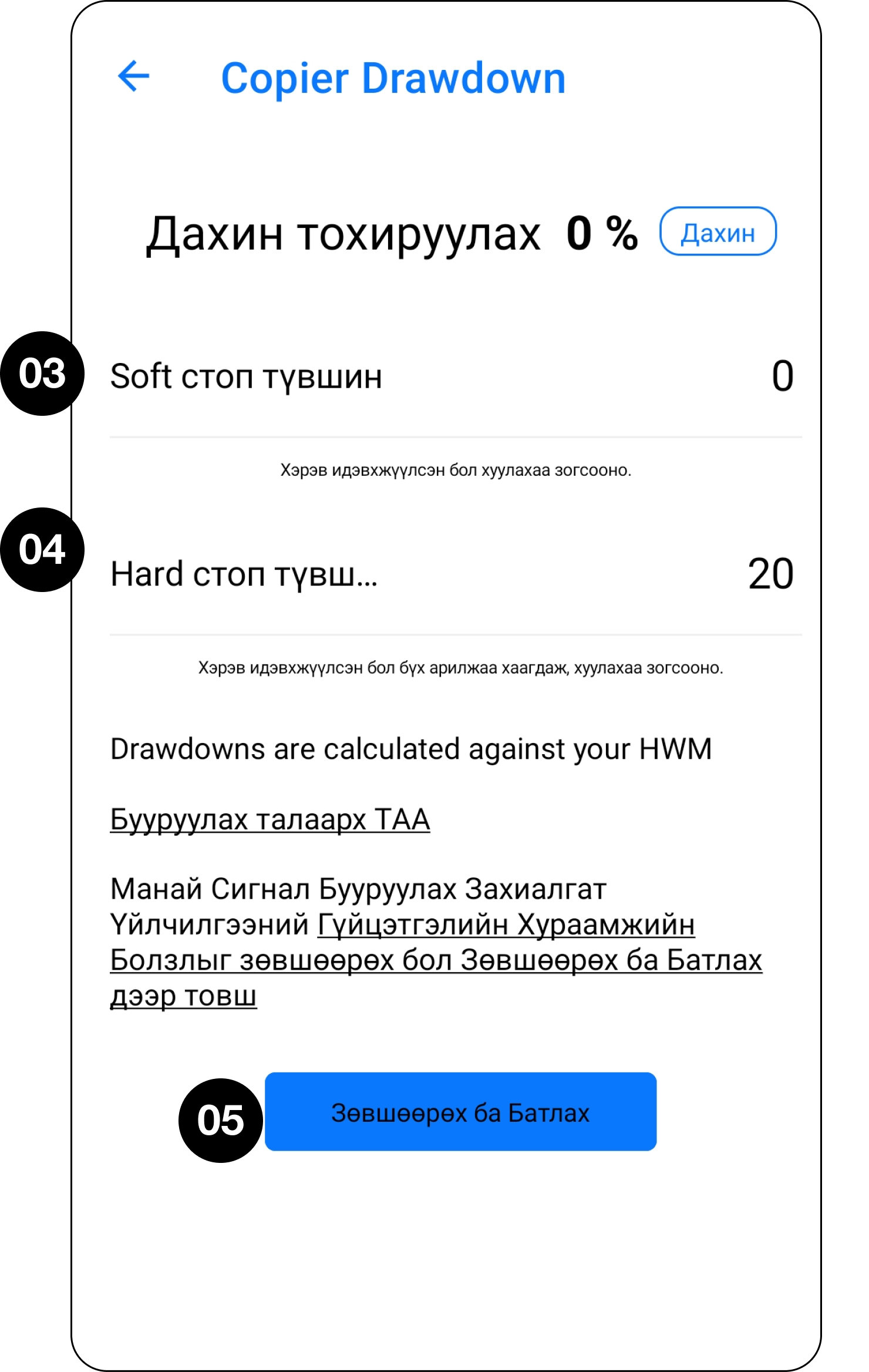 07 Drawdown тохируулна уу